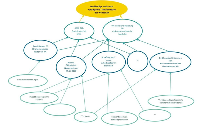 Beispielhafte Darstellung eines Politikdesigns mit verbindlichen Zielen und Maßnahmen zur Ermöglichung einer fairen nachhaltigen Transformation der Wirtschaft