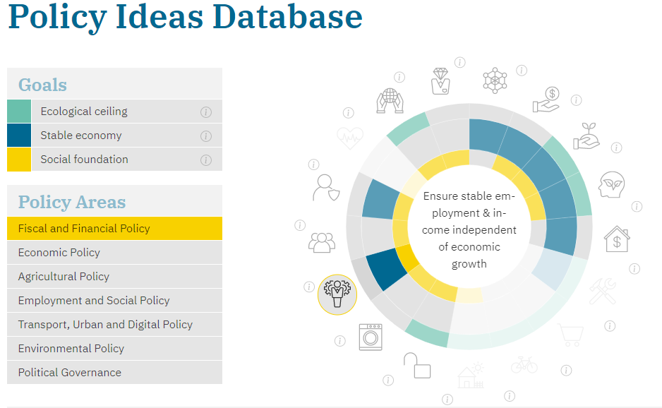 Today’s ecological and socio-economic challenges threaten the long-term stability and resilience of European society. Even though the magnitude of these challenges is broadly acknowledged, political efforts to properly tackle them remain insufficient. To move Europe into the “safe and just space for humanity” (1), innovative policy approaches are required. In fact, these policy approaches must equally address social, ecological and economic goals in a coherent manner and help overcome the primacy of economic growth as a policy goal. However, due to the perception that economic growth is essential to ensuring employment, tackling fiscal debt and achieving higher incomes and levels of well-being, this is easier said than done. Not only does policy have to focus on a wider set of objectives, it also has to liberate economic and political stability from its structural dependency on economic growth. In this way, policymakers are enabled to freely choose among different means to achieve political ends, rather than relying on one specific aspect like economic growth. However, a consistent synthesis of policies seeking to overcome the existing growth imperatives and shape a sustainable and thriving European and global economy is currently missing. Researchers have put forward a multitude of proposals. However, the practical application of these proposals entails several challenges related to the interconnectedness, coherence and concretion of policies as well as their level of implementation by government. This project aims to fill this gap. Our policy framework provides a coherent structure of policy proposals from the academic literature that can help shape sustainable prosperity. In doing so, the project aims to help policymakers comprehend what policy instruments are suitable to promote transformative actions and, in doing so, contribute to political objectives.
