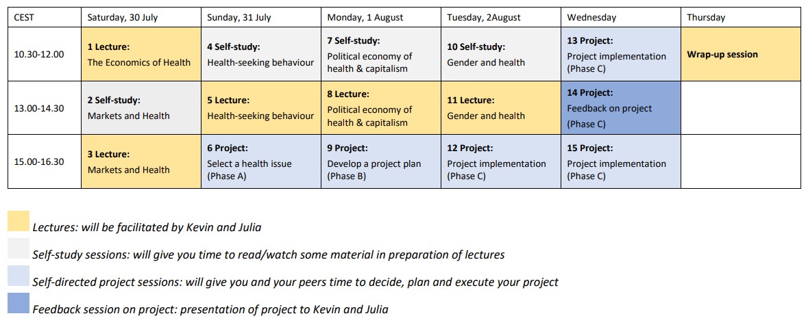 However, these two strands apply only one version of economics – neoclassical economics – to health, and do so in a problematic way. In this workshop we aim to critically engage with Health Economics, rooted in neo-classical economic theory, and to present and discuss alternative perspectives relevant to global public health. These include Keynesian, political economy, feminist and ecological perspectives, paying more attention to health inequalities and planetary health. We will touch upon topics such as the shift from the movement for comprehensive primary healthcare throughout the 1970s to the promotion of selective primary healthcare with the ascendency of neo-liberalism in the 1980s to contemporary calls for Universal Health Coverage; the colonial roots and practices of global public health; the increasing reliance on the private sector in healthcare delivery; as well as public policy responses to the COVID-19 pandemic.