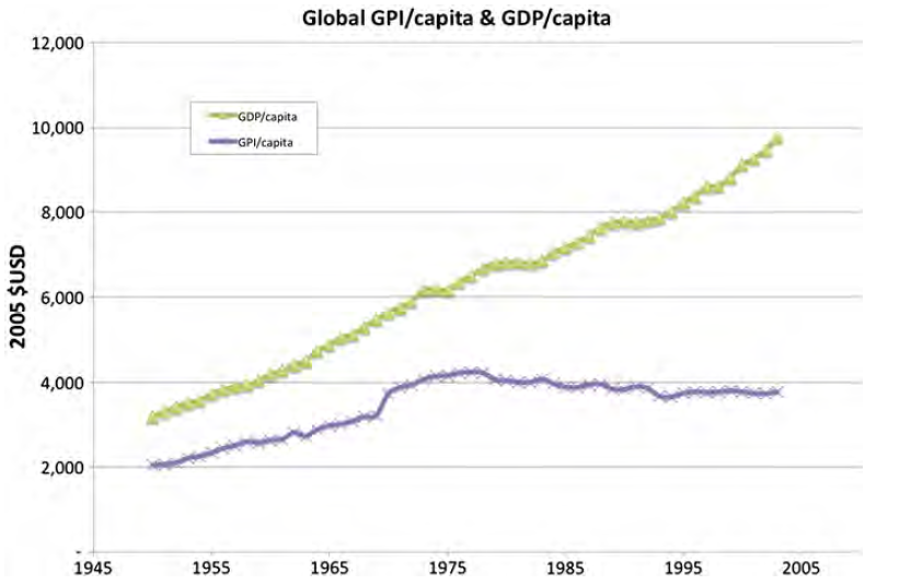 Abb. 2: Vergleich BIP (GDP) pro Kopf & GPI pro Kopf (Kubiszewski 2013)