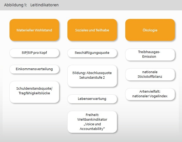 Abb. 1: Leitindikatoren aus Dimensionen des Wohlstands (Bundesfinanzministerium 2013)