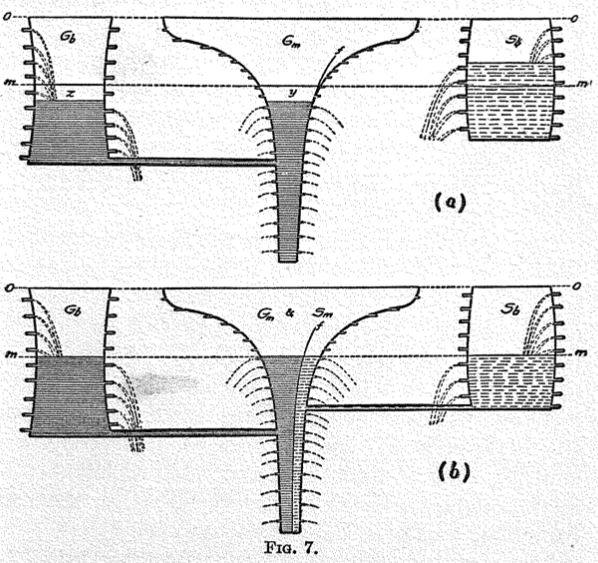 Figure 2: Fisher making use of hydraulics to model the purchasing power of money under a system of bimetallism [21]